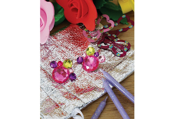 Strass redondos, adhesivos muy brillantes. Prácticos, ya que están listos para usar, sin necesidad de pegamento.