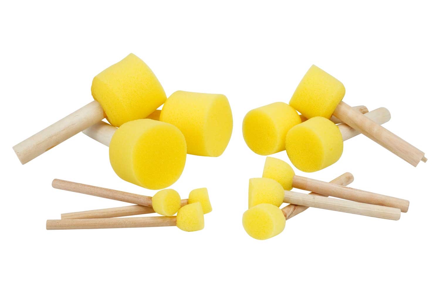 Tampones con punta de espuma y mango de madera. Cuatro tamaños surtidos que permiten usarlos para trabajos de pintura pequeños y grandes. Muy práctico para pintar con plantillas gracias a su punta plana, son perfectos para pequeños y grandes artistas.