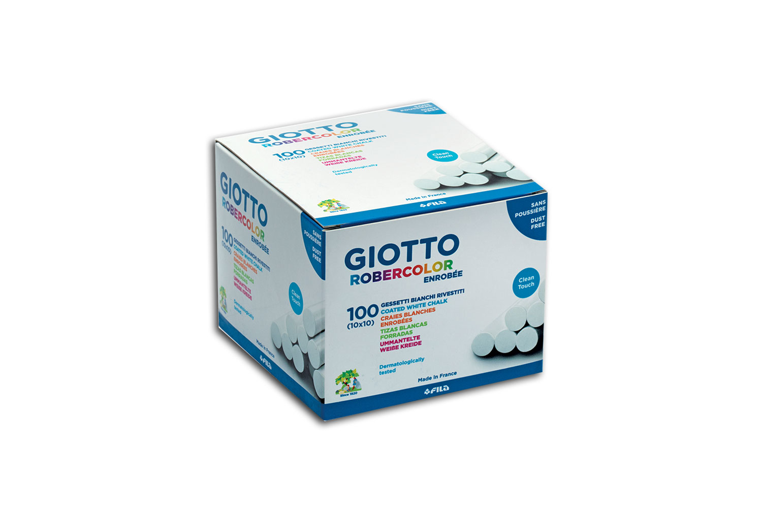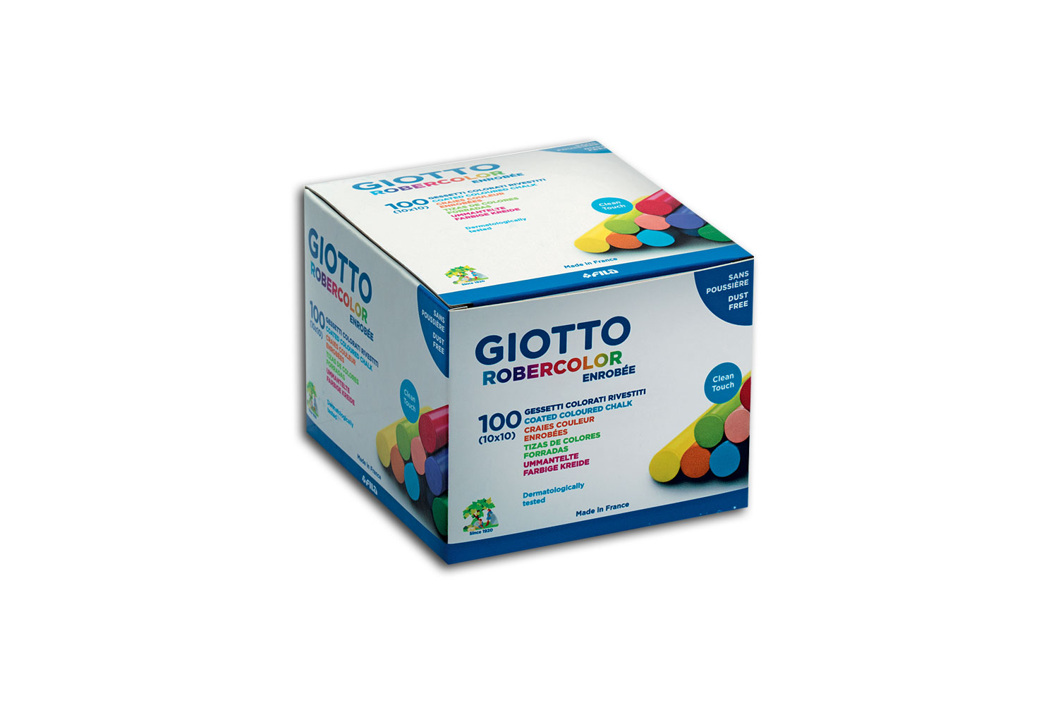 Tiza Giotto de alta calidad con recubrimiento de una película transparente anti-manchas y anti-polvo. Trazado sin chirridos, nítido y fácil, colores vivos y densos, borrado rápido en seco.